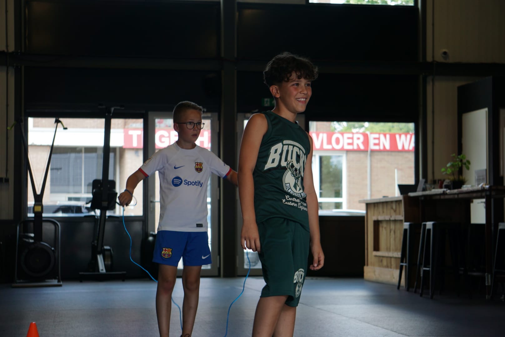 Speelse kracht- en conditietraining voor kinderen met plezier en teamwork.